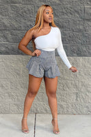 Amber is normally a size small. Bust Size is 35 inches. Waist size is 27 inches. Hip size is 38. Thigh size is 20.5 inches.